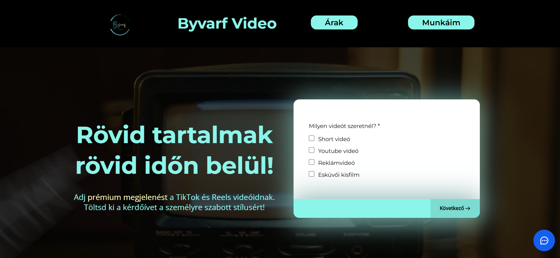 A Byvarf Video számára nemcsak egy weboldalt, hanem egy komplett értékesítési útvonalat hoztam létre. Tartalmazza magát a weboldalt, kérdőívet, automata email-eket. A hatékonyságot segítik az animációk a weboldalon, illetve a referencia munka feltüntetése. A rendszer célja a látogatóból érdeklődővé alakítása, adatok gyűjtése és igényeinek a felmérése.